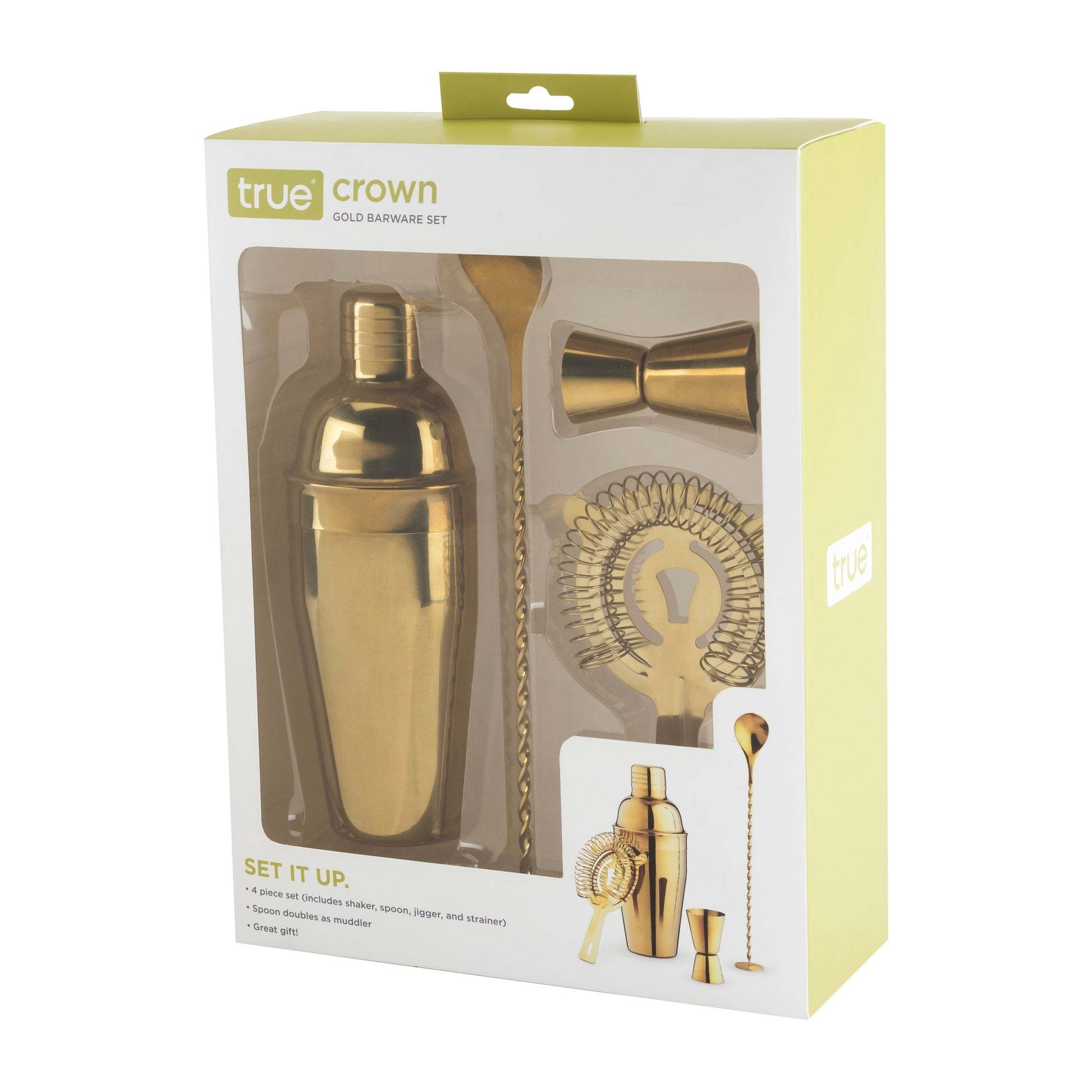• Quantity: 4 piece set (includes shaker, spoon, measured pourer, and strainer)