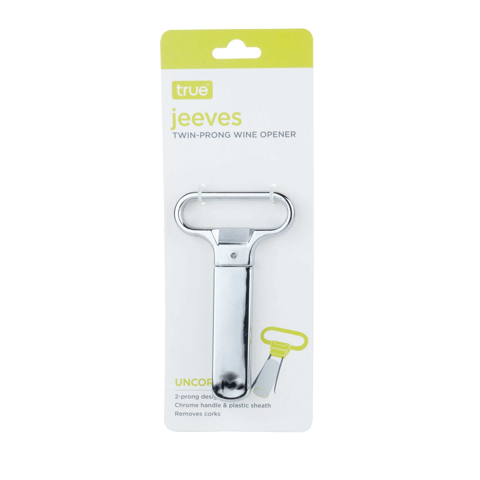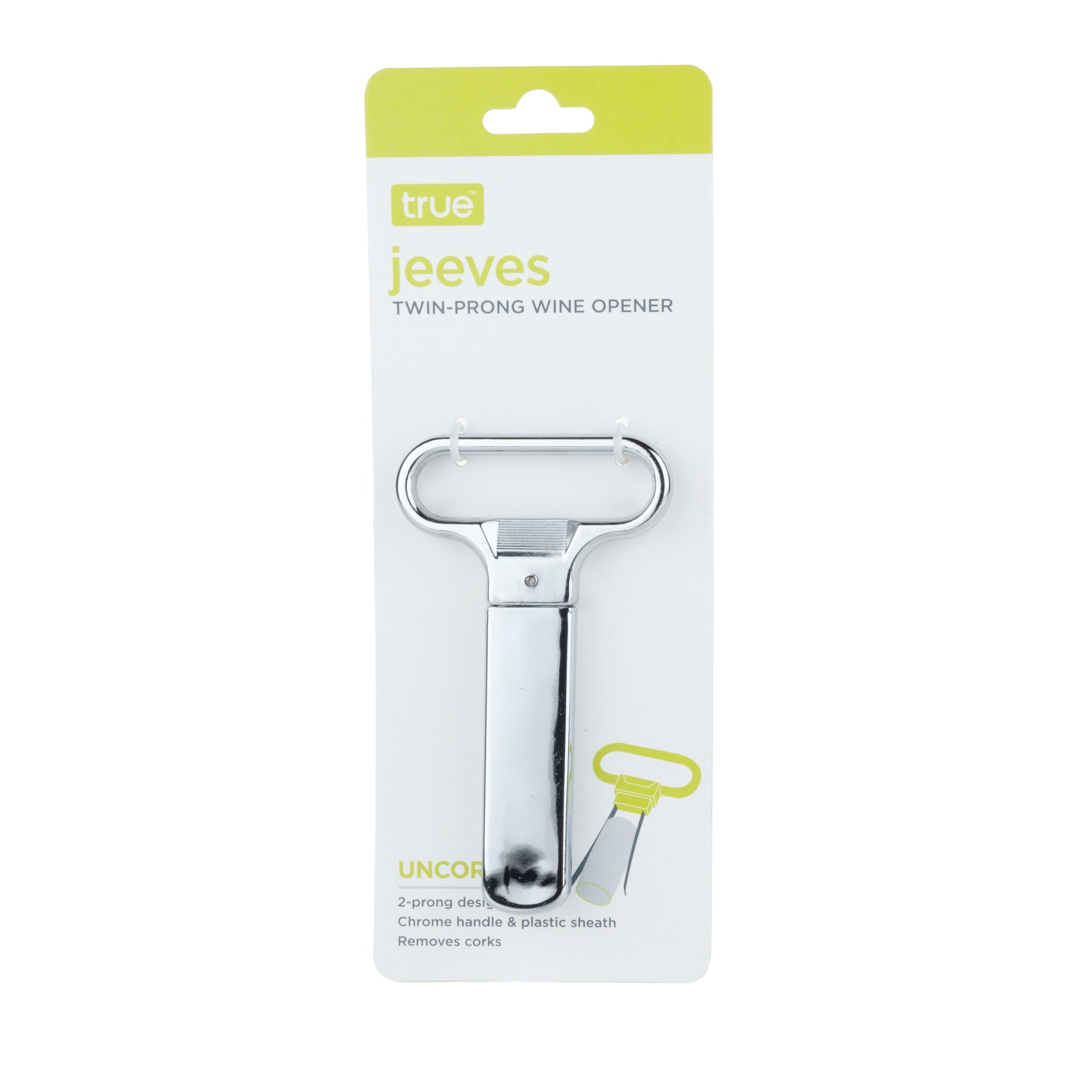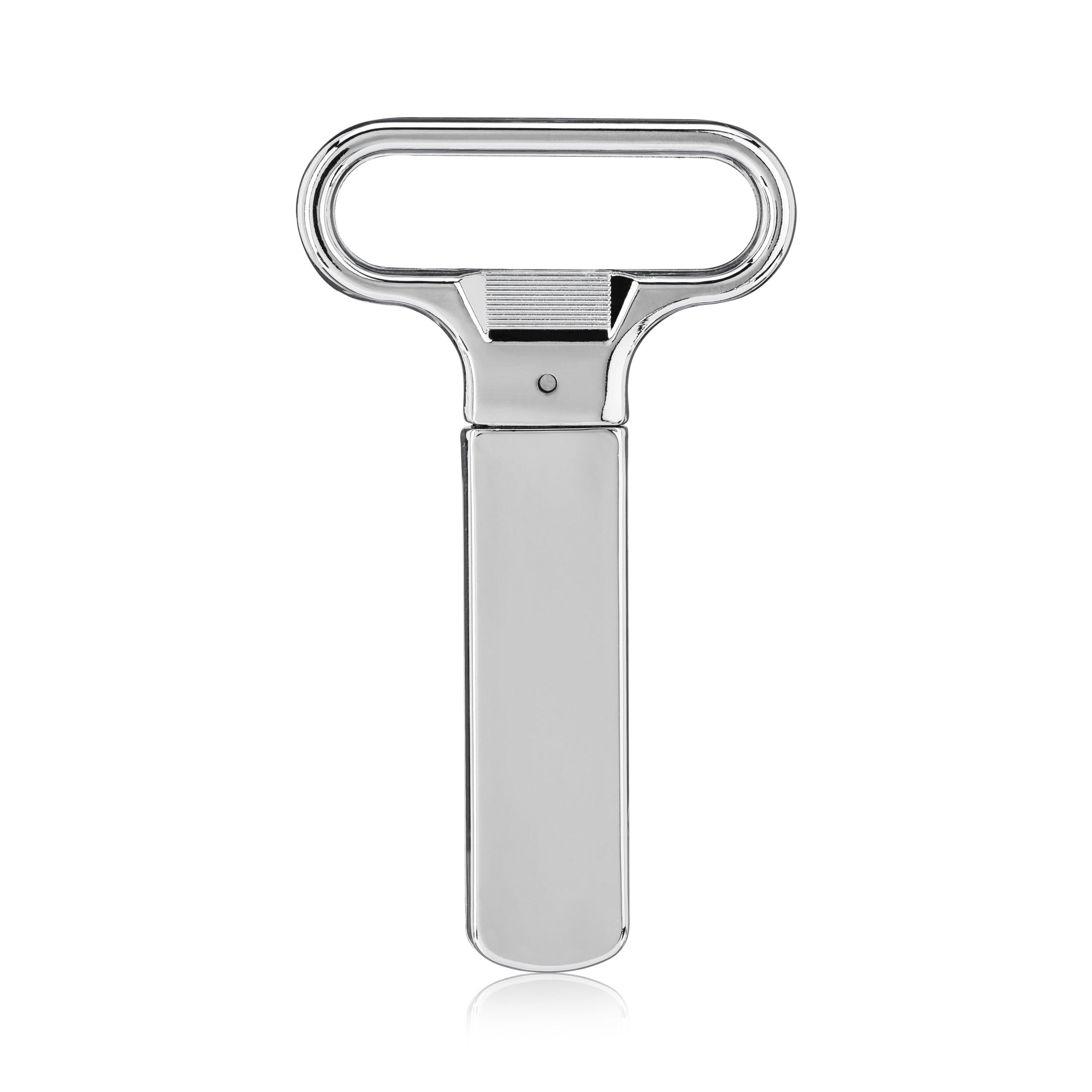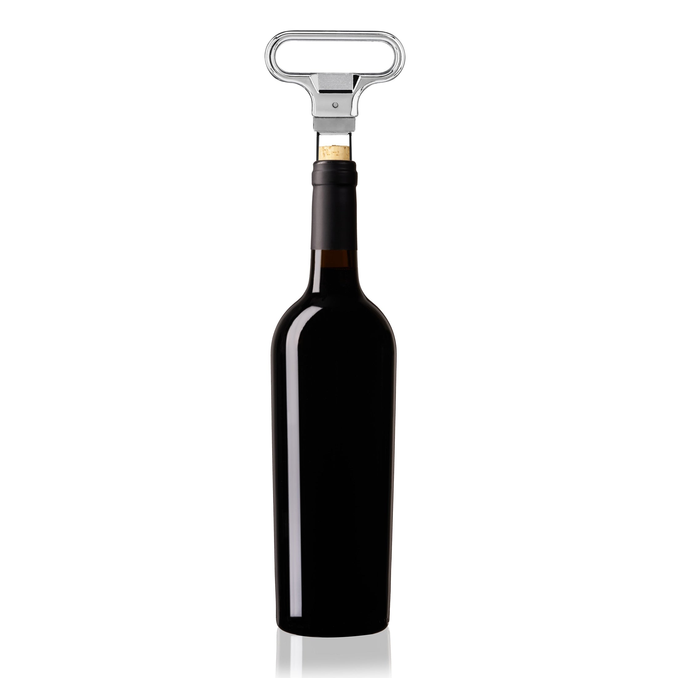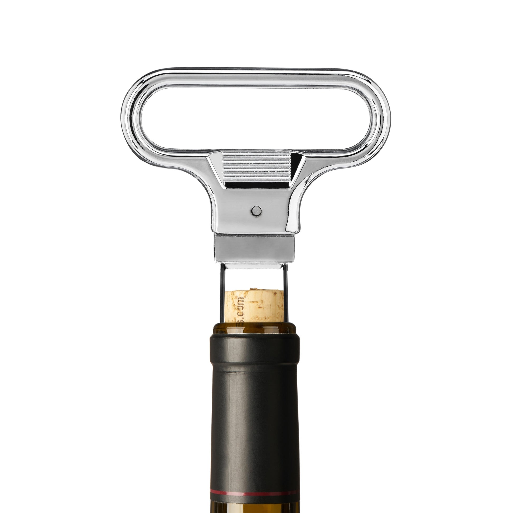 This classic style of wine bottle opener, sometimes known as the “butler’s friend,” slides into the bottleneck alongside the cork and twists out, keeping the cork intact to reuse or to save. Our sturdy chrome version of the vintage tool never fails to impress onlookers and slips into a compact sheath when not in use.