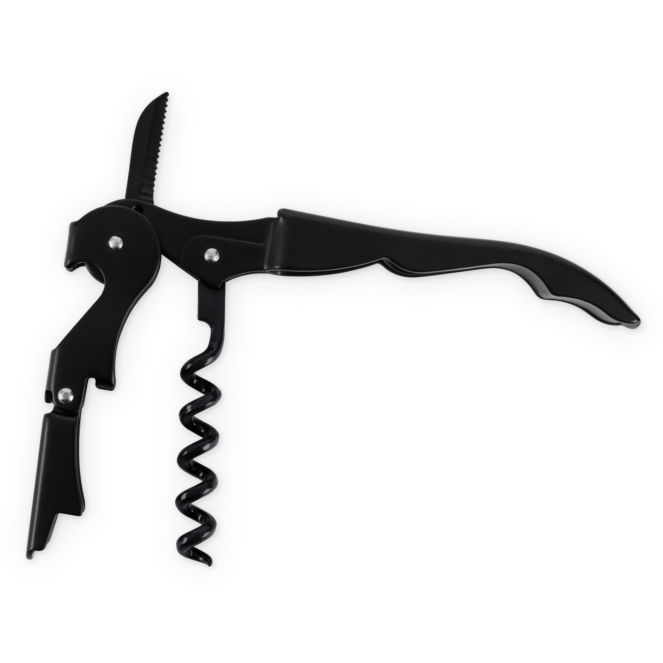 • Includes: Double-hinged arm & integrated bottle opener, Non-stick worm & serrated foil cutter