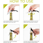 • Includes: Double-hinged arm & integrated bottle opener, Non-stick worm & serrated foil cutter