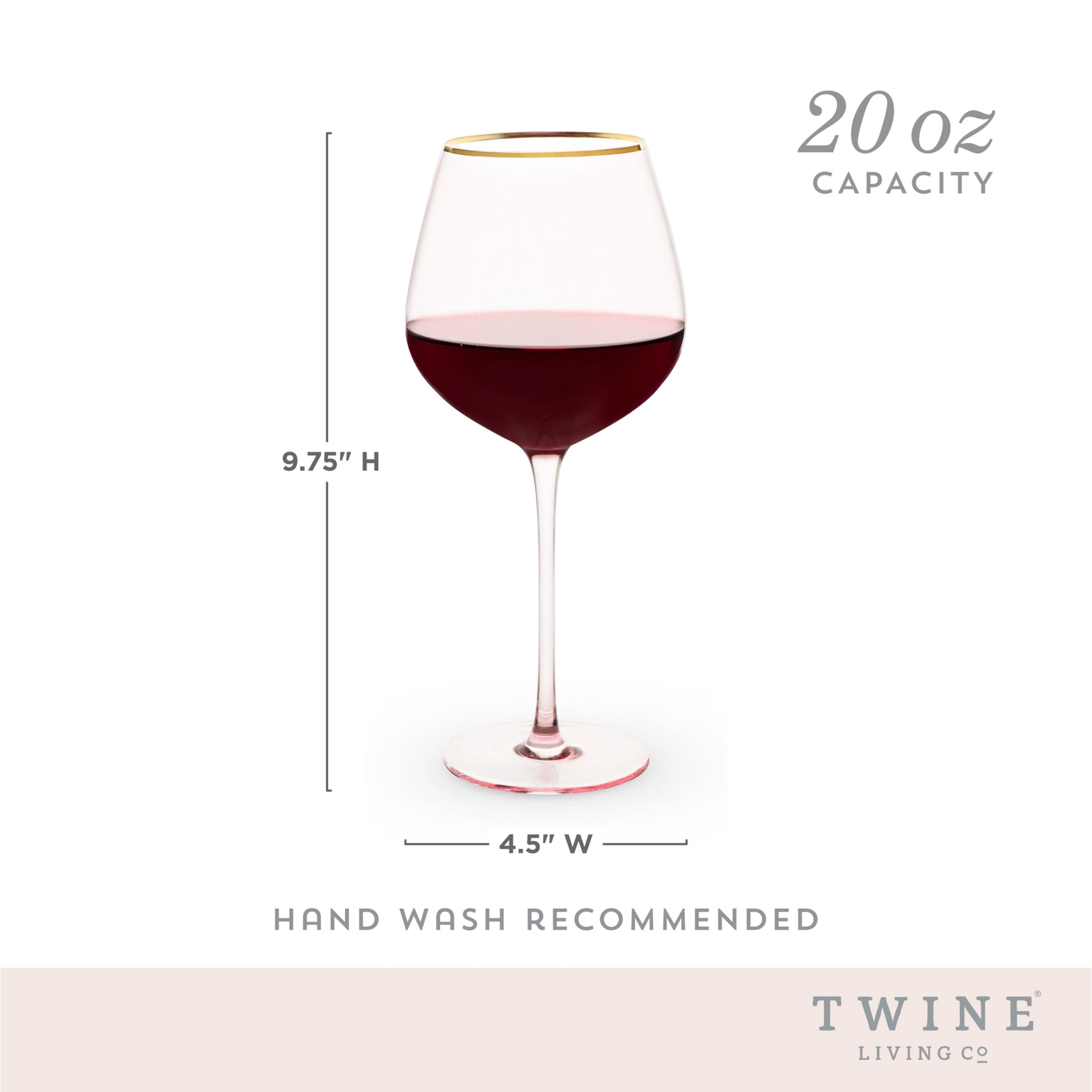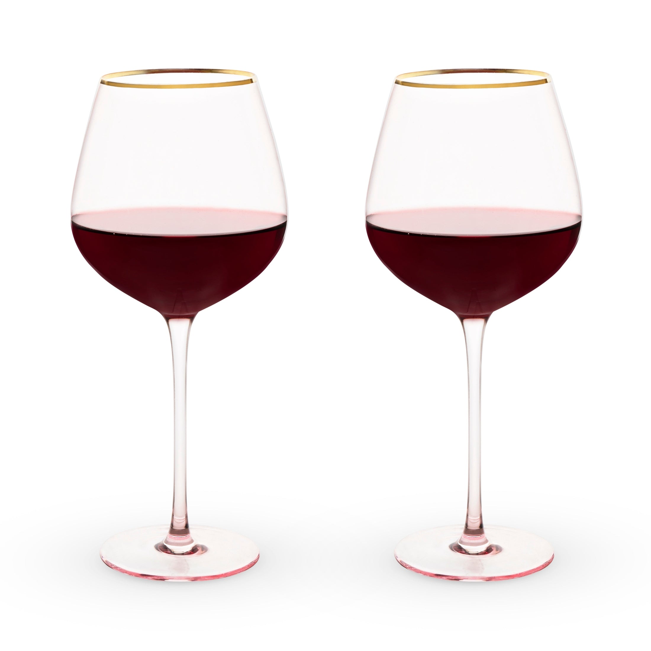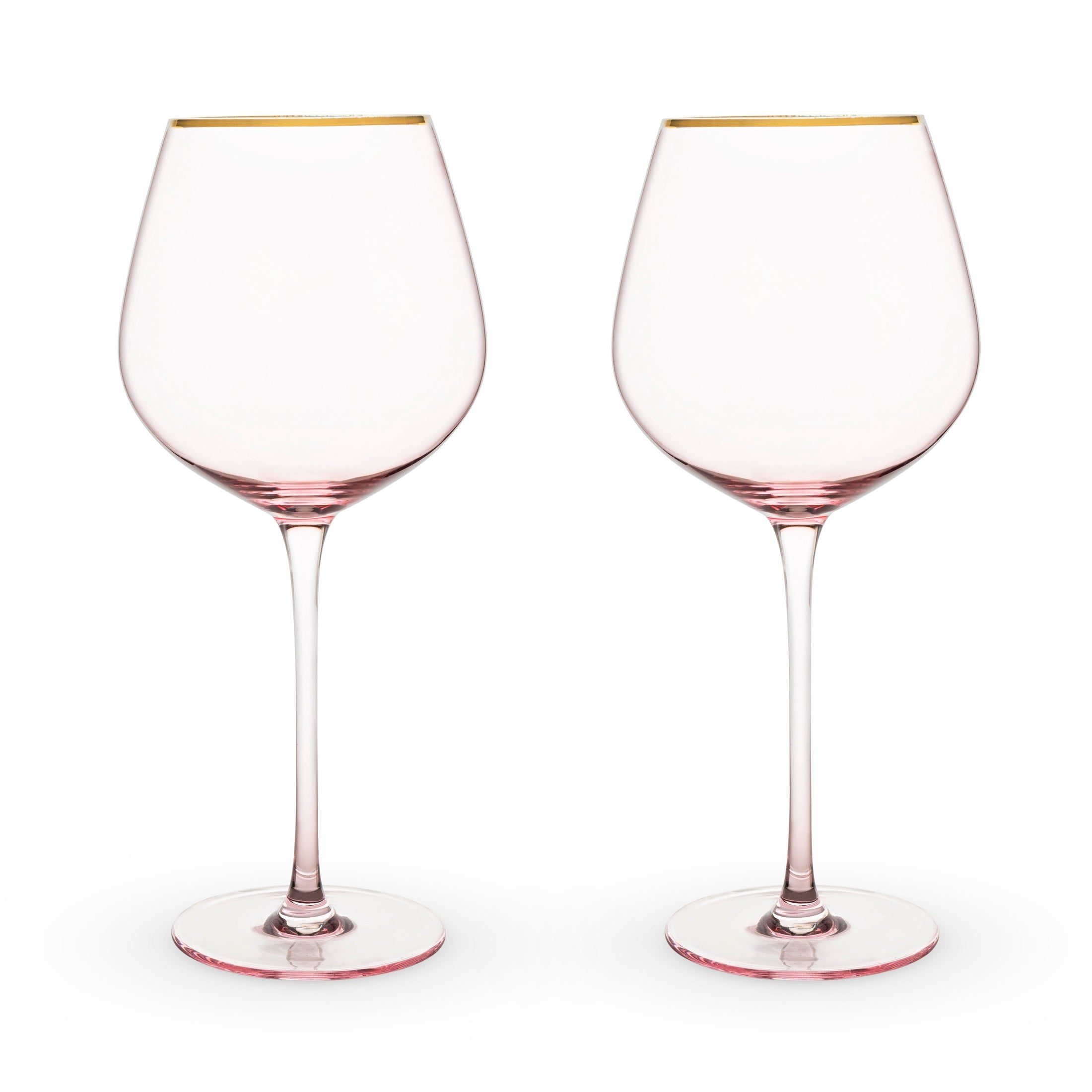 Life looks a lot rosier when you sip from these gold-rimmed glasses. Tinted a delicate pink, these crystal glasses are the perfect vessels for your favorite bottle of red.