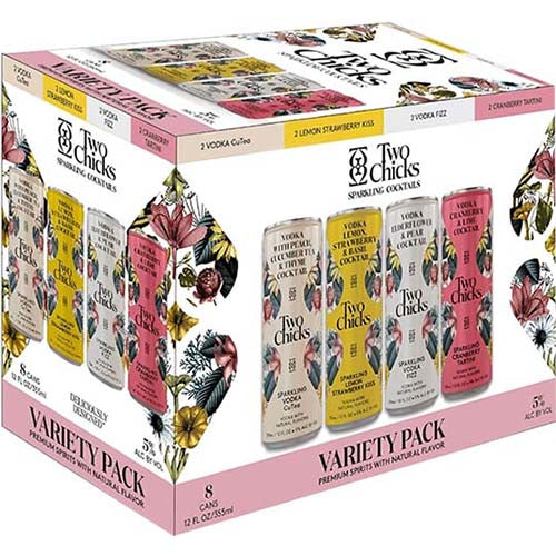 8 Cans Variety Pack, 2 cans each: Vodka Cutea: Vodka, Peach, Cucumber Tea & Thyme. Lemon Strawberry Kiss: Vodka, Lemon, Strawberry & Basil. Vodka Fizz: Elderflower,& Pear. Cranberry Tartini: Vodka, Cranberry & Lime