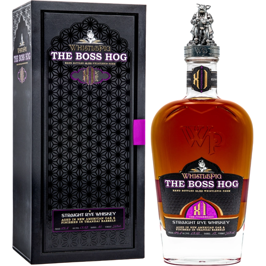 WhistlePig Boss Hog XI The Juggernaut Straight Rye Whiskey is a whiskey that is hand-bottled on the Whistlepig Farm and aged in new American oak barrels, then finished in Thandai barrels. It is part of the Boss Hog series, which is known for being refined Canadian rye whiskeys that are finished in Vermont. These whiskeys are rare and beloved by collectors, and are also considered expensive.